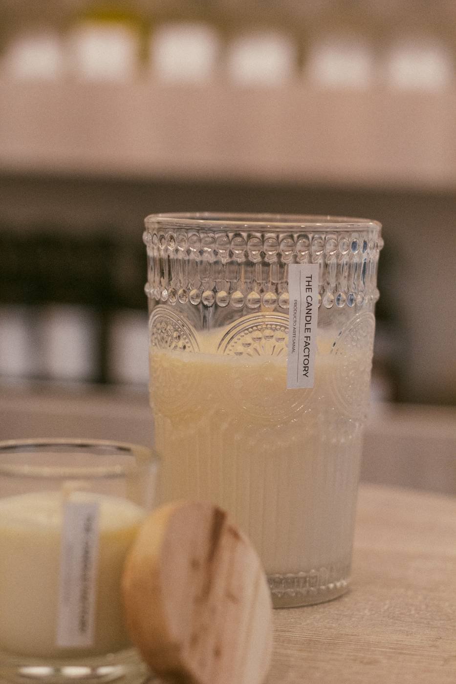 Vela aromática en envase de vidrio. Contiene 200 gr de vela 100% cera de soja. Medidas: 8 cm de diámetro x 10 cm de alto